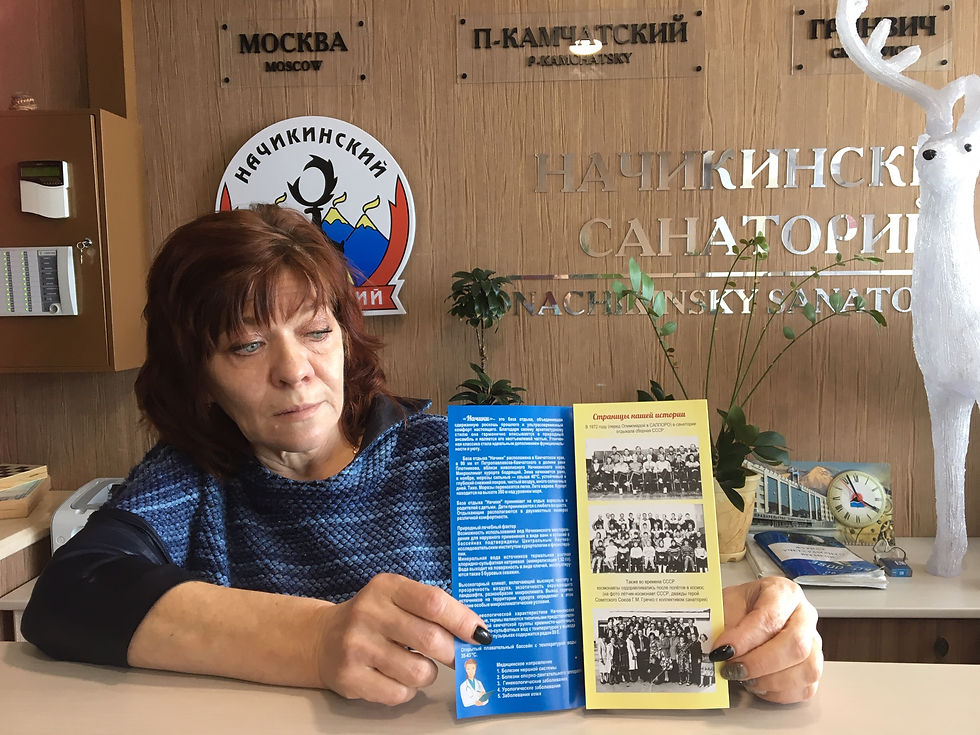 Некогда этот санаторий был самым знаменитым в СССР. Здесь отдыхали высокие "шишки" от партработников до звезд эстрады со всего бывшего СССР. Но перестройка внесла свои коррективы и долгие годы это место было забыто. Об этом иногда напоминают обшарпанные стены, побитая советская плитка... Но сейчас , некогда жемчужина Камчатского края, активными темпами восстанавливается.